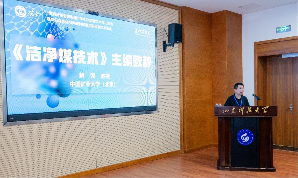 阳凡林副校长代表会议主办单位致欢迎辞;《洁净煤技术》主编、中国矿业大学(北京)解强教授致开幕辞;梁鹏教授介绍了山东省煤炭分级转化与低碳利用重点实验室建设情况。大会还发布了“洁净煤‘碳’索”2025年度煤炭分质分级利用领域高影响力论文名单,解强和梁鹏共同为获奖作者颁发证书。