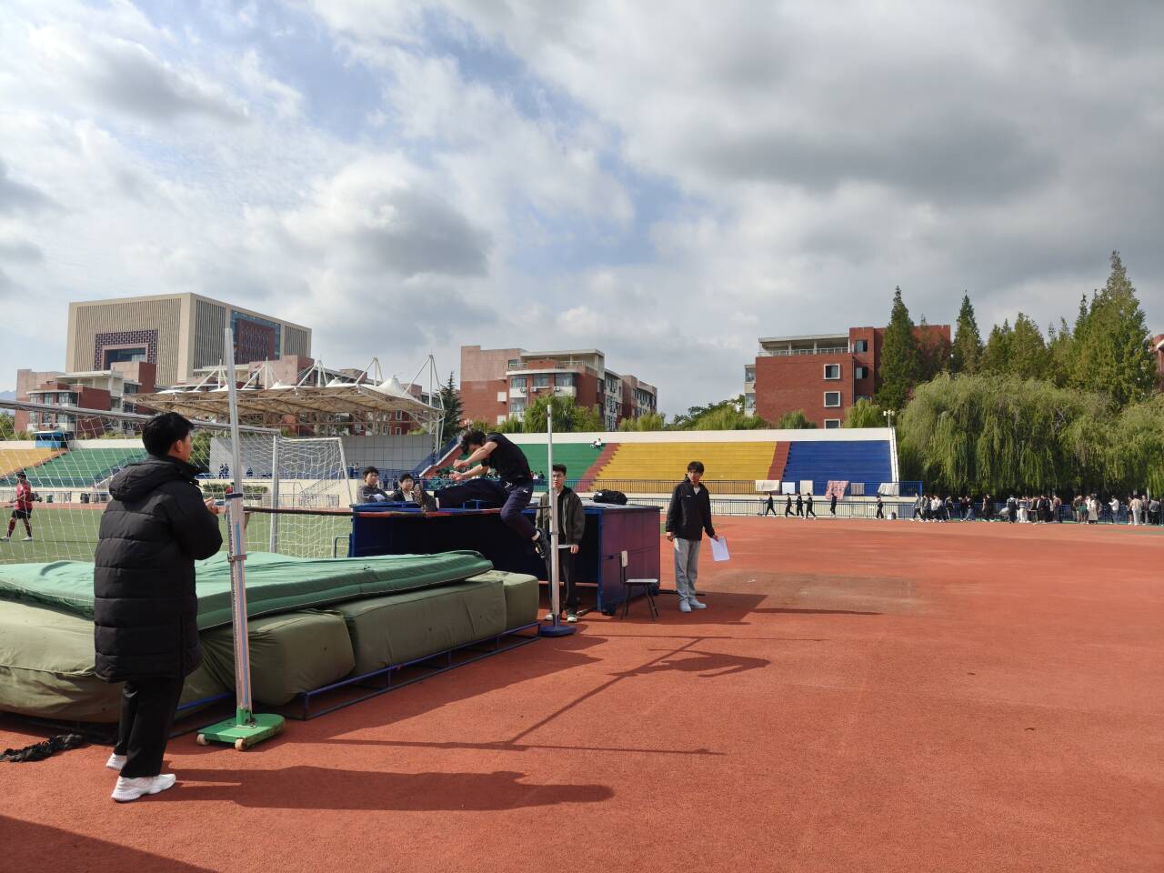 观众席上,师生们化身为“最强后援团”,加油声、喝彩声此起彼伏,将赛场氛围推向高潮。他们的热情为运动员们注入了源源不断的动力,也让整个操场充满了温暖与团结的力量。