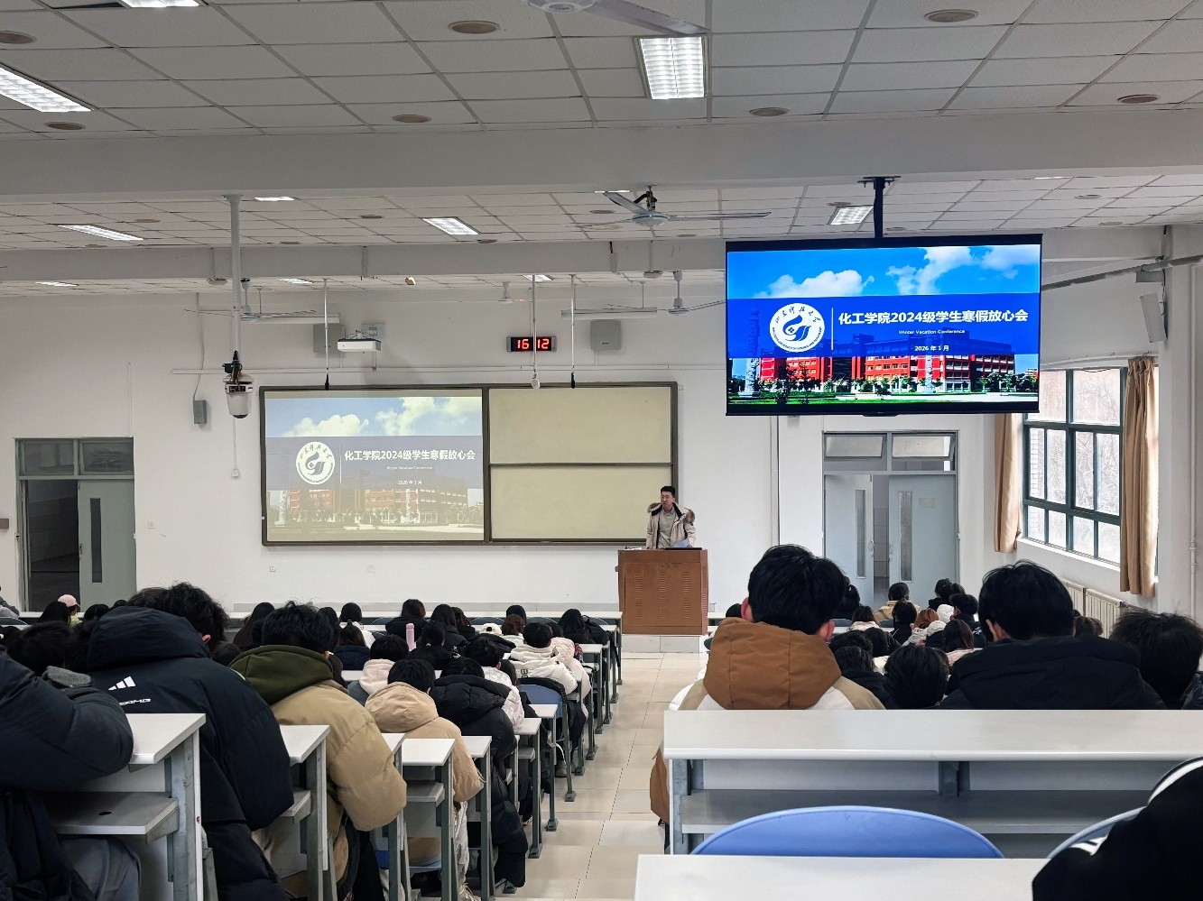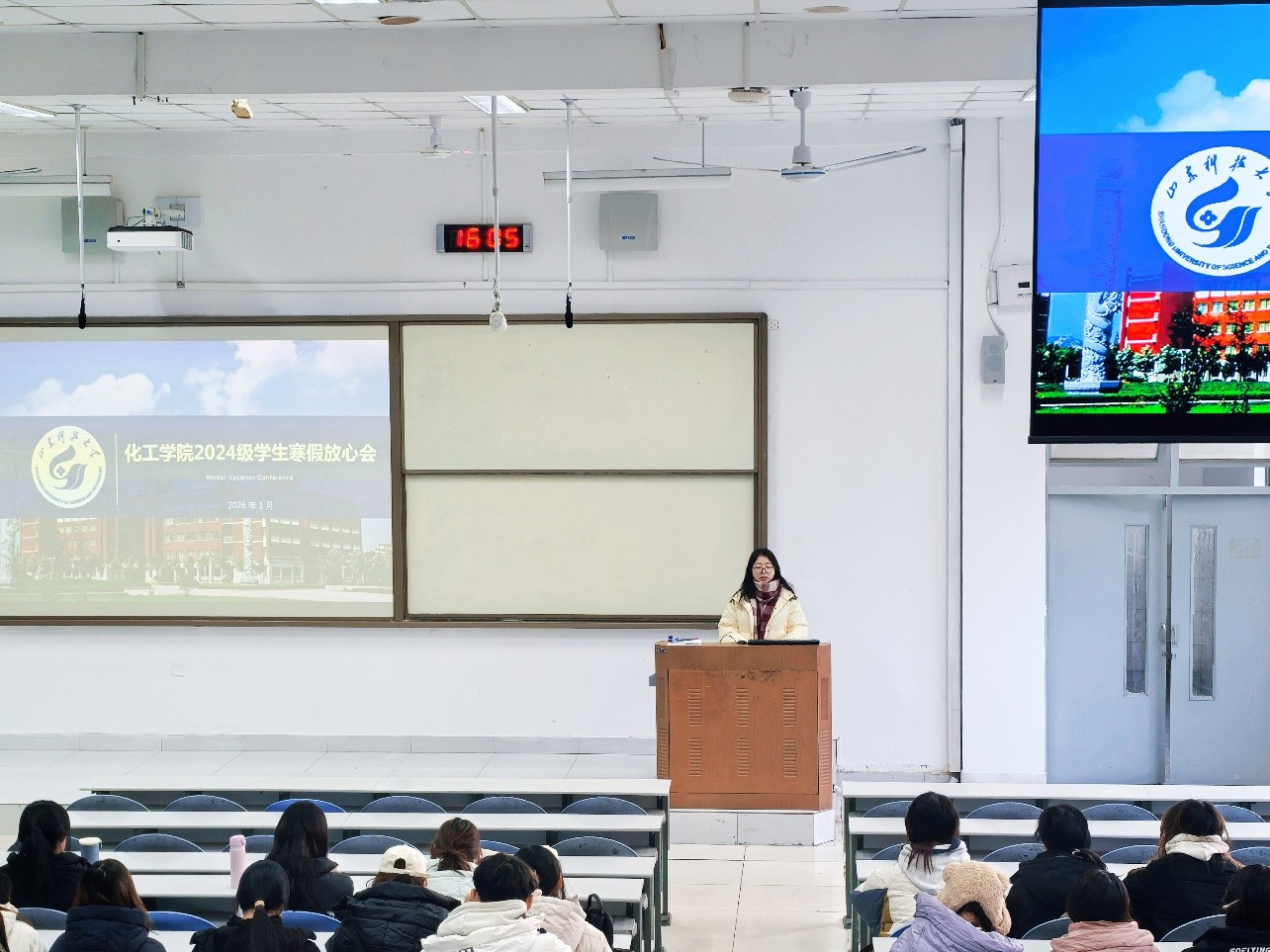 针对大一新生,辅导员李玲玲以“假期安全与适应性过渡”为重点展开指导。她结合真实案例,系统讲解了出行、网络、居家等方面的安全防范要点,并引导同学们做好从高中到大学首个寒假的过渡规划,鼓励大家在适度休息的同时,积极参与社会实践、发展兴趣爱好,逐步培养自主规划与独立生活的能力。